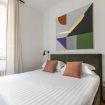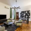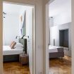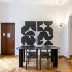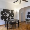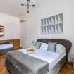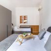 The attention to colors and the choice of design furniture, such as lamps and armchair, make this apartment into a highly refined ambience that will make your Roman holiday a very unique experience.