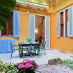 Dal soggiorno si accede a un giardino interno fiorito, corredato di tavolo, sedie e una tenda da sole ad apertura elettrica per proteggere la vostra privacy.