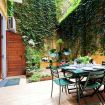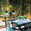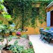 Lungo le pareti del giardino si inerpica una rigogliosa vite americana che rinfresca le giornate estive.