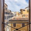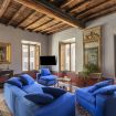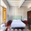 As you enter you are welcomed in a spacious entrance room with an antique bookcase filled of Italian art and literature books, to the right of which you find the Green bedroom with its ensuite bathroom. This is a large and comfortable double bedroom with a generous window overlooking the rooftops of Trinita’ dei Monti.