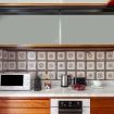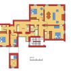 The bathroom tiled in off-white marble has a basin, WC, shower and bidet and is to be found down the hallway. Off the kitchen there is a spacious new bathroom with white mosaic tiles, divided into two areas: one for the WC and a small basin; the other has double basins and a large glass-enclosed modern shower.