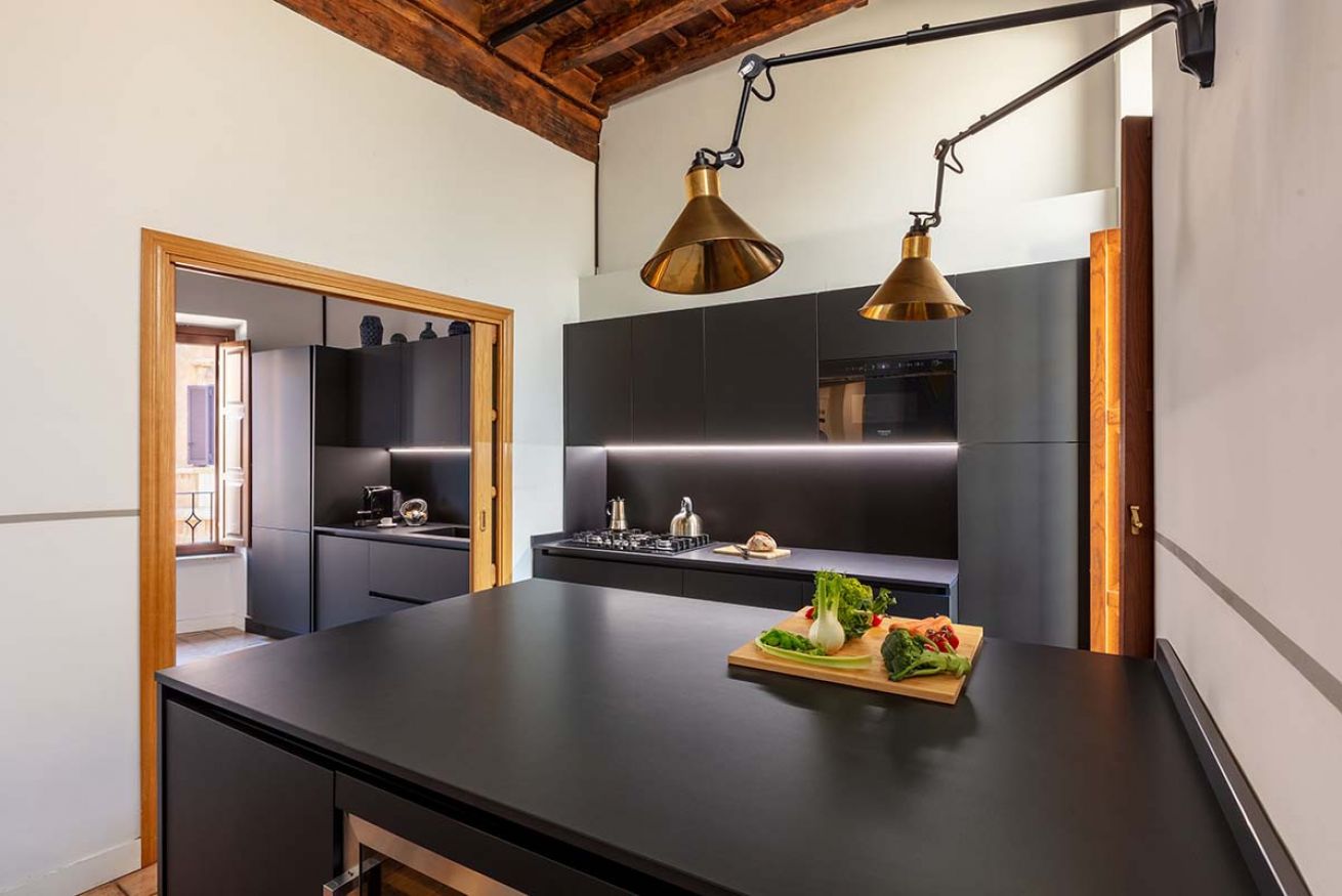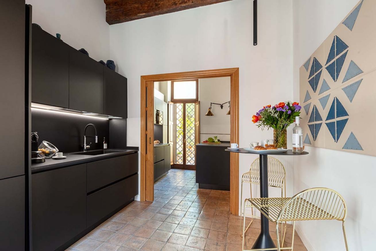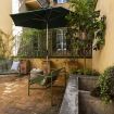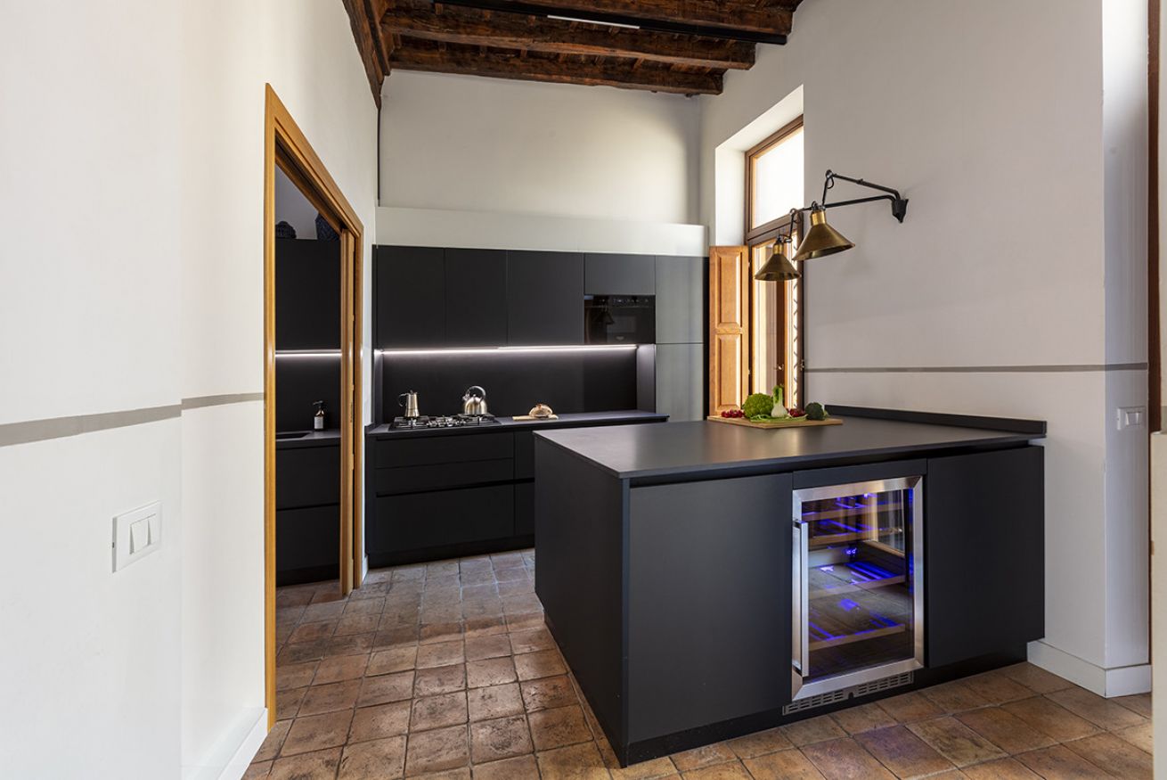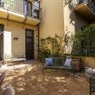 A beautiful and ample terrace can be accessed from the kitchen. An outdoor lounge, chairs and dining table are an ideal ambiance to relax all together after a long day of sightseeing in the city.