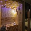 Accanto alla zona giorno si entra nella grande suite con letto matrimoniale. A vostra disposizione trovate una sauna e una jacuzzi a due posti. Questa camera è servita da un bagno ensuite con doccia e rubinetteria nera.