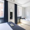 La ristrutturazione è stata seguita da un team di giovani architetti che ha scelto materiali di pregio per tutti gli ambienti e per le finiture, nonché le ultime tendenze sull’illuminazione, dalle lame di luce a lampadari di rinomate case di produzione. Gli arredi sono stati realizzati su misura da artigiani, oppure scelti tra rinomati brand di design, come Calligaris, Bonaldo o Mogg.