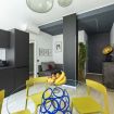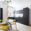 La zona giorno è composta da un angolo salotto con TV da 50”, un tavolo da pranzo in cristallo con sedie Calligaris e la cucina. Avete a disposizione una cantinetta per i vini, forno a microonde, lavastoviglie, macchina da caffè Nespresso. In cucina è presente anche la lavatrice.