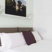 The entrance opens into the living room with an open kitchen. Here you can come together in the evening, seated around the large oval “Tulip” style table, a timeless design from the 1960s. The kitchen is fully equipped and ready for you to prepare an Italian meal for your family and friends. In the kitchen you’ll find a traditional oven and microwave, fridge with freezer, dishwasher and Nespresso coffee maker. Finally, a plush sofa provides a comfortable place to relax at the end of an eventful day in front of a Smart TV.